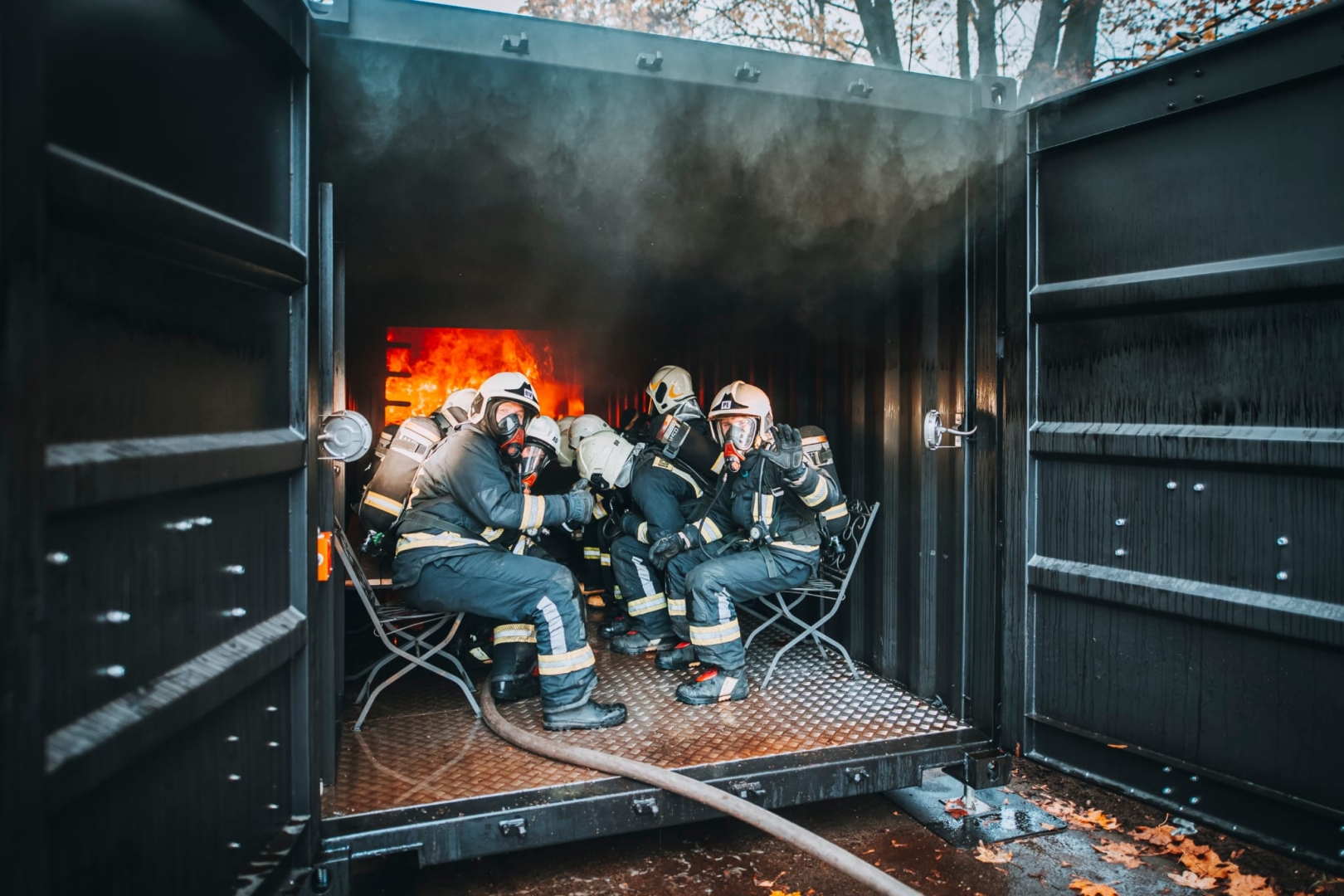 Šajā mācību gadā dūmu gāzu konteinera degšanas procesu izpētei un mācību procesa pilnveidošanai ir uzstādīts jauns dūmu gāzu konteiners, kurš sastāv no diviem jūras (20 pēdu) konteineriem un ir izveidots kā ugunsgrēka imitācijas trenažieris, kurā pēta degšanas procesu, dinamiku un attīstību dažādos degšanas apstākļos, degšanas produktu veidošanos un temperatūras svārstības imitētā ugunsgrēka dažādos līmeņos.